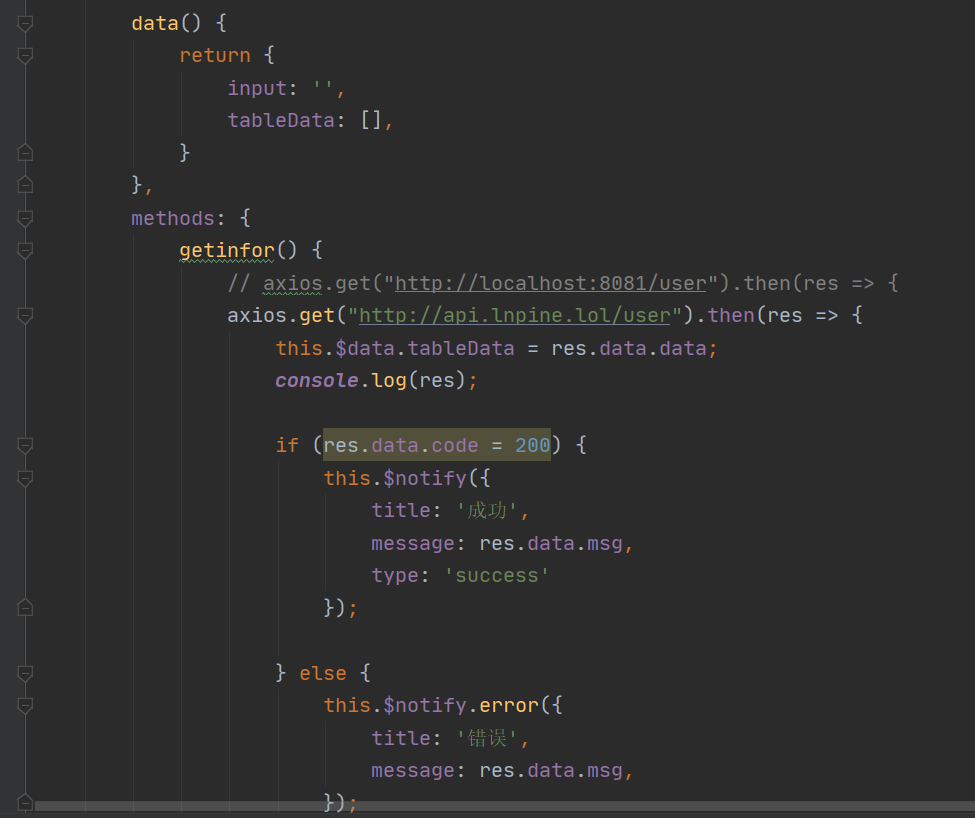 绑定对应的data与axios请求数据方法: