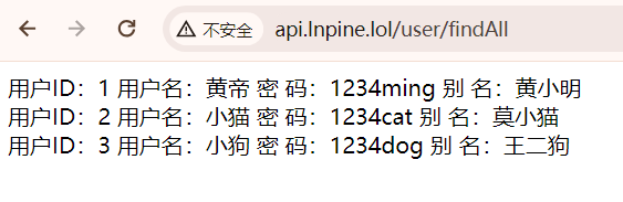 http://api.lnpine.lol/user/findAll