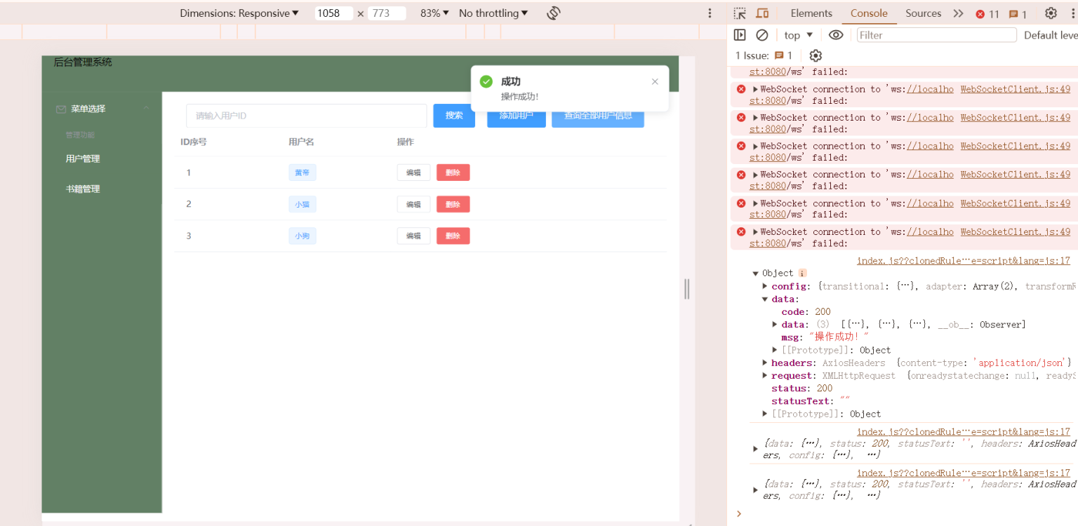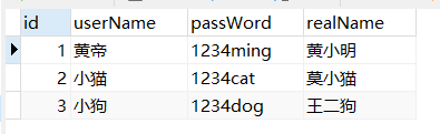 根据用户id获取对应信息(id范围:1-3,有bug没有完善),获取用户id=1的对应信息: